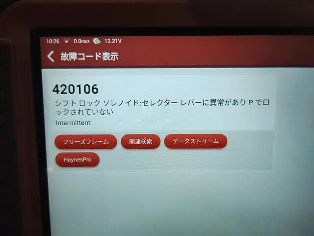 すぐに診断機を接続してエラーコードを確認したところ、、、やはりシフトレバーの不具合を確認しました。。