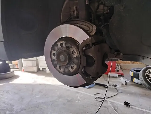画像の左側にあるコードのようなものが、ブレーキパッドセンサになります。