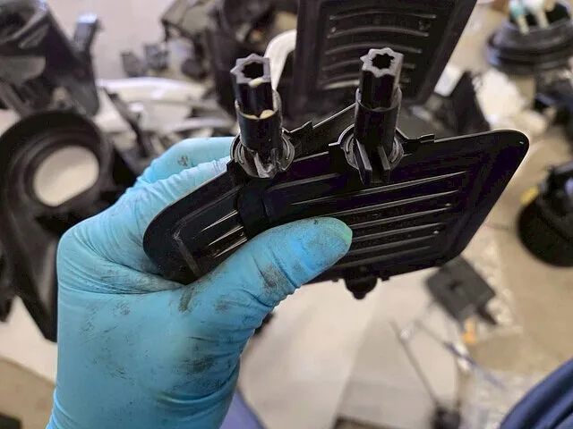 このフラップが物理的に割れてしまったり、フラップを動かすアクチュエーター(モーター)が故障したりすると、仕切りが「冷風側」で固定されてしまい、どれだけ温度設定を上げても冷たい風しか出てこなくなります。F56型においては、このフラップの軸部分がプラスチック製で強度が十分でない個体があり、経年劣化や動作負荷によってポキリと折れてしまう事例が報告されています。